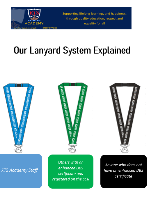 At KTS Academy, safeguarding is our top priority. We use a colour-coded lanyard system to help everyone in our school community quickly identify who has been through our safeguarding checks.